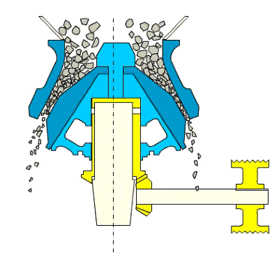 圓錐破碎機工作中,給料要均勻,不能偏移。如果給料不均會出現(xiàn)生產(chǎn)能力降低,產(chǎn)品粒度過大,彈簧動作頻繁,碗形軸承壓力大,功耗上升。壓力過大也會發(fā)生“飛車”和斷軸事故。