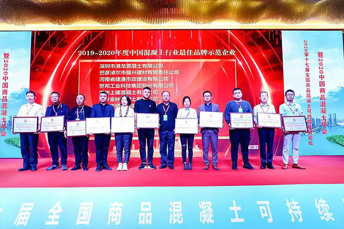 憑借在混凝土行業(yè)的突出貢獻,世邦集團在此次大會上獲評“2019-2020年度中國混凝土行業(yè)理想品牌示范企業(yè)”榮譽稱號,這不僅是行業(yè)及協(xié)會對世邦綜合實力的認可與肯定,也構(gòu)成了世邦繼續(xù)做大做強,持續(xù)為行業(yè)發(fā)展作貢獻的力量源泉!混凝土行業(yè)的未來,世邦集團與您一起來迎接!