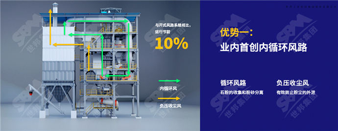 創新采用內循環風路,有效實現石粉的收集和粉砂的分離,與開式風路系統相比,運行節能10%;搭配負壓收塵風,有效防止粉塵的外泄,運行過程更環保。