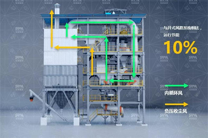 創(chuàng)新采用內(nèi)循環(huán)風(fēng)路,有效實(shí)現(xiàn)石粉的收集和粉砂的分離,與開式風(fēng)路系統(tǒng)相比,運(yùn)行節(jié)能10%;搭配負(fù)壓收塵風(fēng),有效防止粉塵的外泄,運(yùn)行過程更環(huán)保。