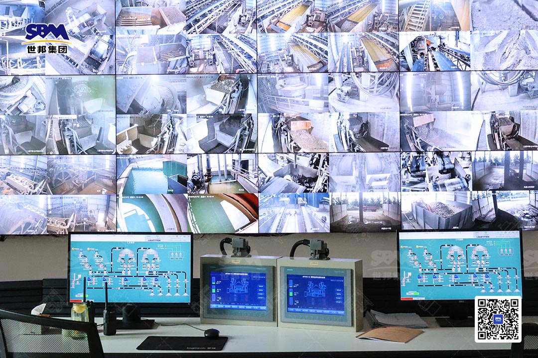 該項(xiàng)目由世邦集團(tuán)總承包(EPC),采用“三段破碎+一段整形制砂”工藝,主機(jī)選用世邦2臺(tái)C6X顎式破碎機(jī),2臺(tái)振動(dòng)給料機(jī),2臺(tái)HST單缸圓錐破,4臺(tái)HPT多缸圓錐破,12臺(tái)篩子,4臺(tái)VSI6X整形制砂機(jī)。在生產(chǎn)線設(shè)計(jì)初期,世邦集團(tuán)格外注重綠色環(huán)保、智能自動(dòng)化等方面,充分結(jié)合現(xiàn)場(chǎng)條件,合理安排生產(chǎn)線布局。
