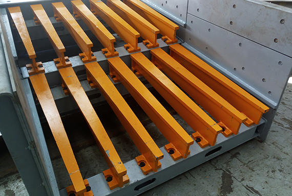 采用NM耐磨鋼組焊而成的棒條結構,不僅壽命長,篩分效率高,安裝調整也非常便捷;棒條開口設定可在80-200mm范圍內調節;兩段棒條組階梯高落差結構,使得物料二次分散,能有效剔除小于破碎機緊邊排礦口的細料免于重復破碎,剔除效率90%以上,大大降低初段破碎機負荷。