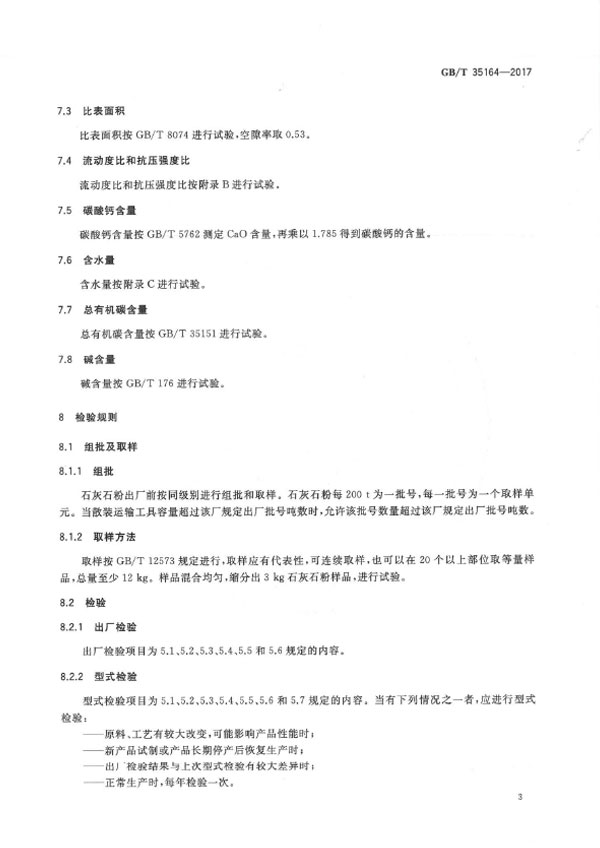 本標準規定了用于水泥、砂漿和混凝土中的石灰石粉的術語和定義、組分與材料、技術要求、分級代號、試驗方法、檢驗規則、出廠、交貨與驗收、包裝、標志、運輸和貯存等。