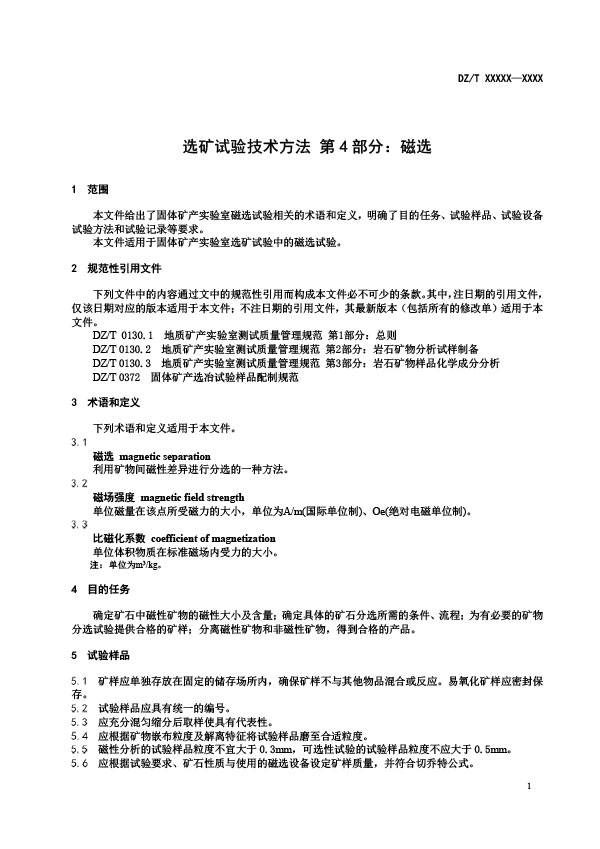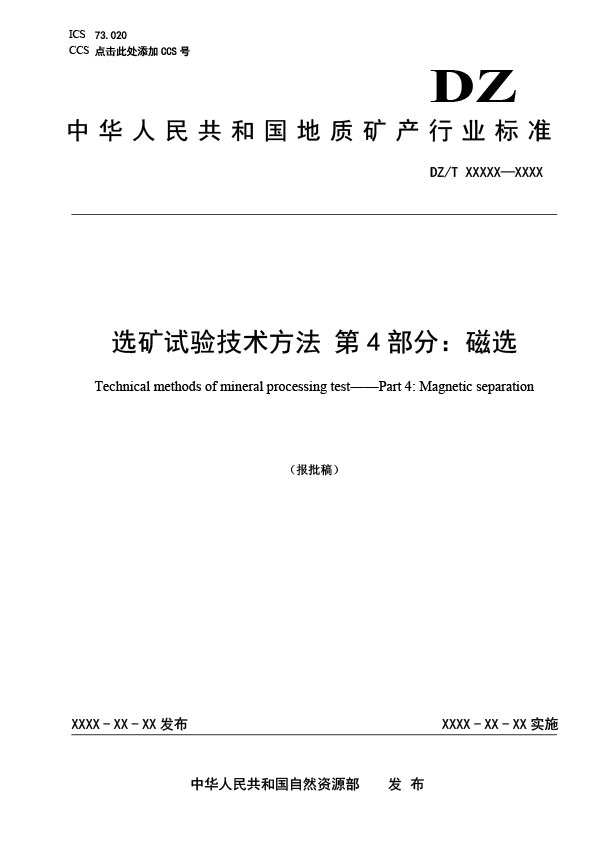 本文件給出了固體礦產(chǎn)實(shí)驗(yàn)室磁選試驗(yàn)相關(guān)的術(shù)語和定義,明確了目的任務(wù)、試驗(yàn)樣品、試驗(yàn)設(shè)備試驗(yàn)方法和試驗(yàn)記錄等要求。 本文件適用于固體礦產(chǎn)實(shí)驗(yàn)室選礦試驗(yàn)中的磁選試驗(yàn)。