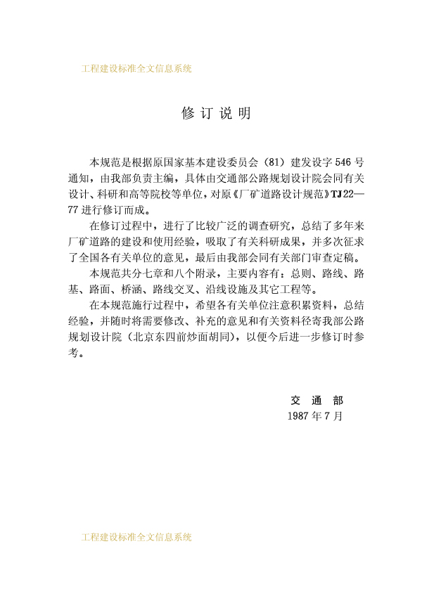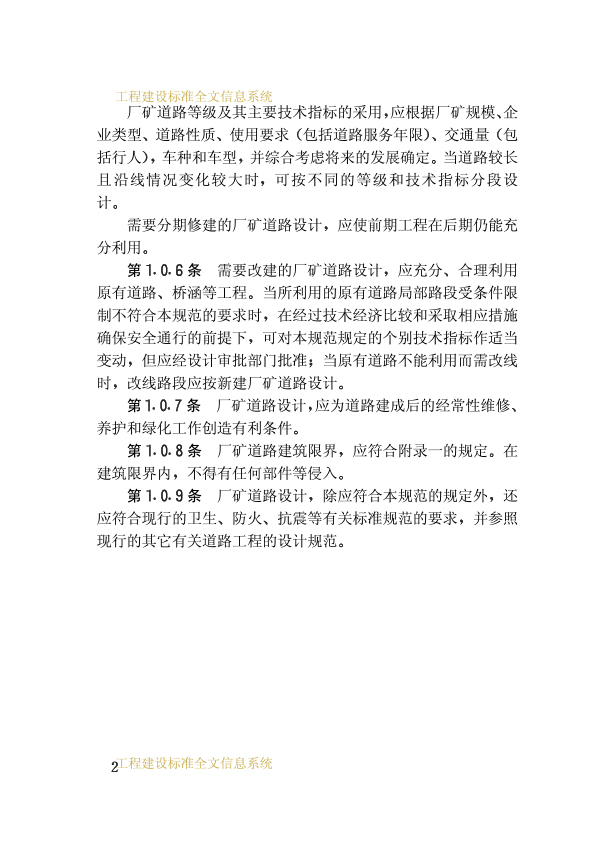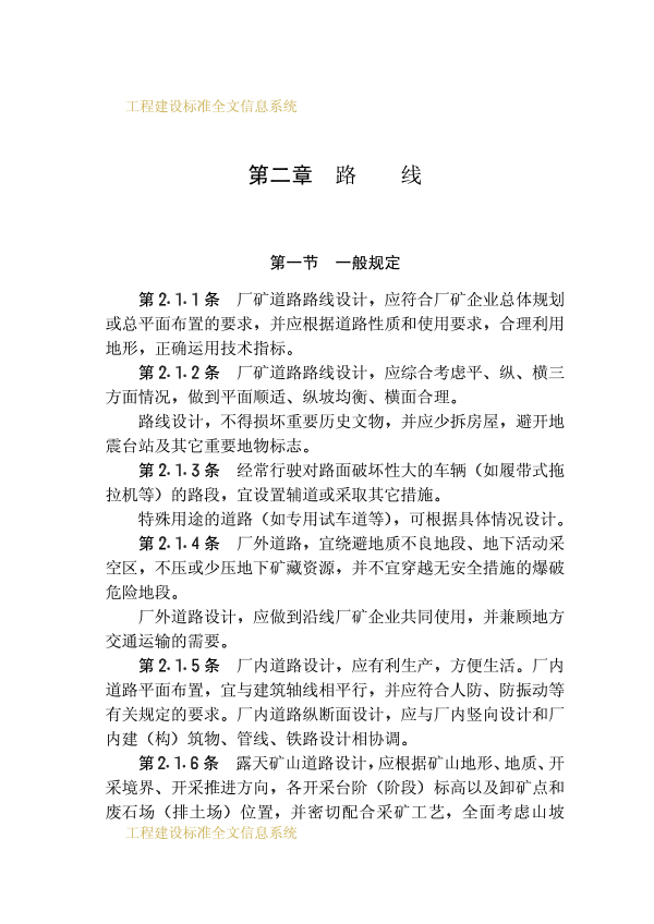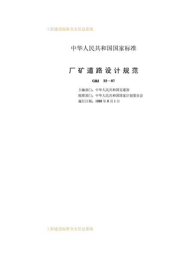 為使廠礦道路設計貫徹執行國家的有關方針政策,從全局出發,按廠礦企業總體規劃,統籌兼顧,合理布設,并做到技術先進、經濟合理、安全適用、確保質量,特制訂本規范。本規范適用于新建、改建的廠礦道路設計,不適用于林區道路設計。