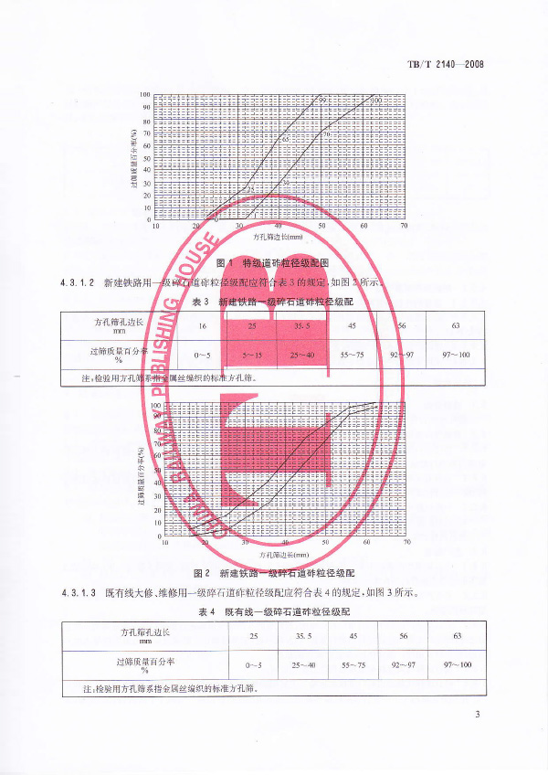 本標準規定了鐵路碎石道砟的技術要求、檢驗規則和運輸、貯存、驗交。明確對道砟粒徑、級配、顆粒形狀及清潔度的檢驗指標;對道砟集料壓碎率指標值做出規范;對道砟運輸貯存提出了更為嚴格的要求,保證出場上道道砟的級配符合本標準的相關要求。
