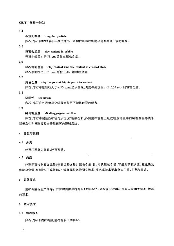 建筑用石料的生產不僅會影響自然環境,還影響工程建設質量。隨著工程建筑對石料的消耗不斷增加,石料的來源趨于復雜,同時隨著工程技術的進步,對混凝土質量要求提高,對石料的質量要求也不斷提高。本標準適用于建設工程中水泥混凝土及其制品用卵石、碎石。